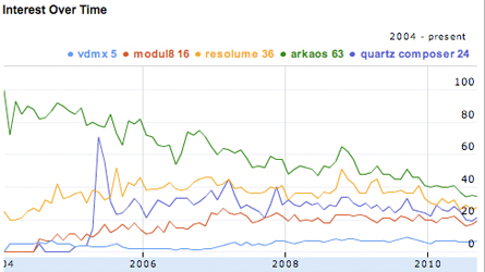 Skynoise just published some interesting stats on Google search terms related to VJing.