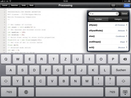 I got really excited when I heard about PR0C3551IN6, an app for iPad, iPhone and iPod Touch that will let you code and run Processing sketches. You can import/export your files via iTunes and the video output can be mirrored to a second screen if you have an iPad2. If things goes according to plans, there will be video output even for the iPad1 in a future release. The app will be released within the next few weeks. Read more about what this app can and can’t do on the project web site.